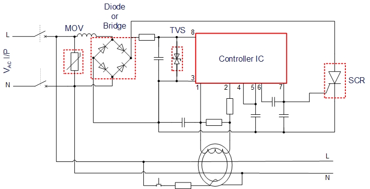 漏电保护器,简称漏电开关,又叫漏电断路器,主要是用来在设备发生漏电故障时以及对有致命危险的人身触电保护,具有过载和短路保护功能,可用来保护线路或负载的过载和短路,亦可在正常情况下作为线路的不频繁转换启动之用。 目前市场上使用的漏电保护装置种类繁多,但大体的原理都相差不大。漏电保护器主要是由三部分组成:检测元件、中间放大环节、操作执行机构 1. 检测元件:由电流互感器组成,检测漏电电流并发出信号 2. 放大环节:将微弱的漏电信号放大,按装置不同可采用机械式或电子式 3. 执行机构:收到信号可控硅由断开状态变为导通状态,主线圈通电后,主开关由闭合状态转换为断开状态,从而切断电源 应用于漏电保护器领域,BG大游集团微电 能提供比较齐全的元件解决方案。比如:AC 输入端防浪涌的压敏电阻(MOV)、对交流进行整流的高压整流二极管 (Diode) 或者是整流桥(Bridge)、对电源端进行过压防护的瞬态抑制二极管(TVS)、整个电路的控制核心集成电路(IC)、电路动作执行机构(SCR)等。