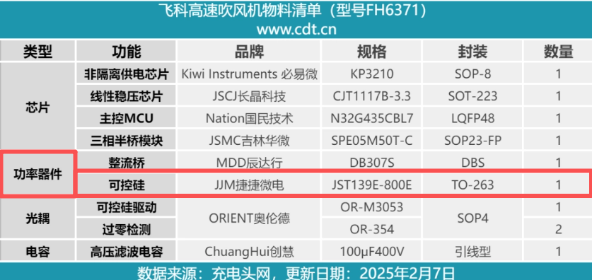 在颜值与性能兼具的个护赛道,一场关于「风」的革命正在发生。国产品牌飞科推出的高速吹风机FH6371,凭借11万转无刷电机、六种风温风模式组合,迅速圈粉新一代用户。拆解发现,在这款产品的智能电力调控核心中,BG大游集团微电可控硅JST139E-800E如同整个电路的“智能指挥官”,精准调度每一股电流,安静却强大地支撑着整个吹风机的流畅运转。